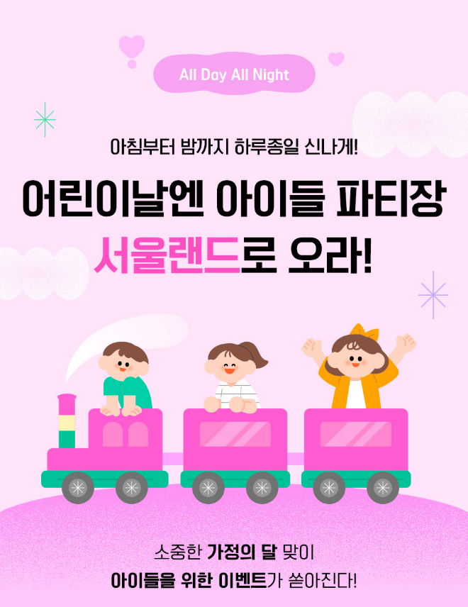 👉 서울랜드는 매년 어린이날 시즌에 맞춰 다양한 캐릭터 테마 퍼레이드와 야외 이벤트를 준비하며,