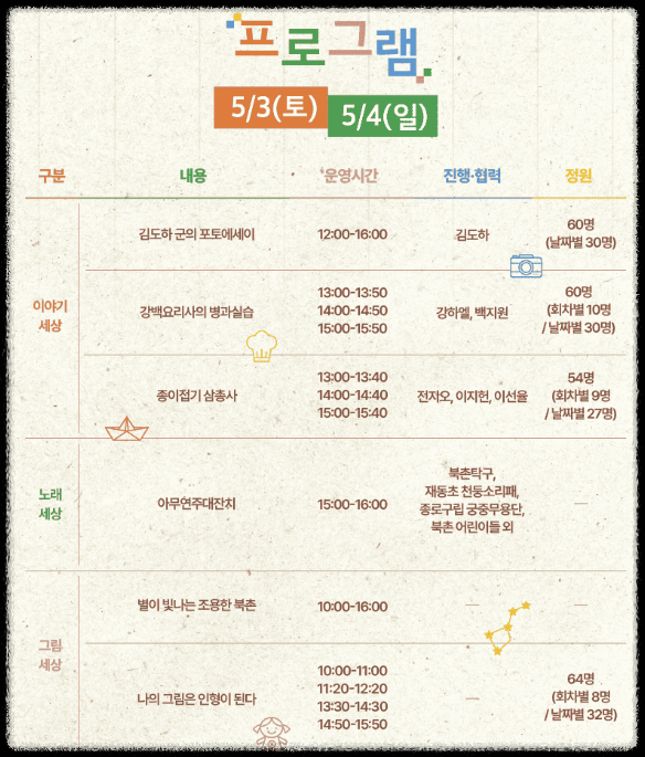 | 일시 | 2025년 5월 3일(토), 4일(일), 6일(화) 10:00~16:00 |