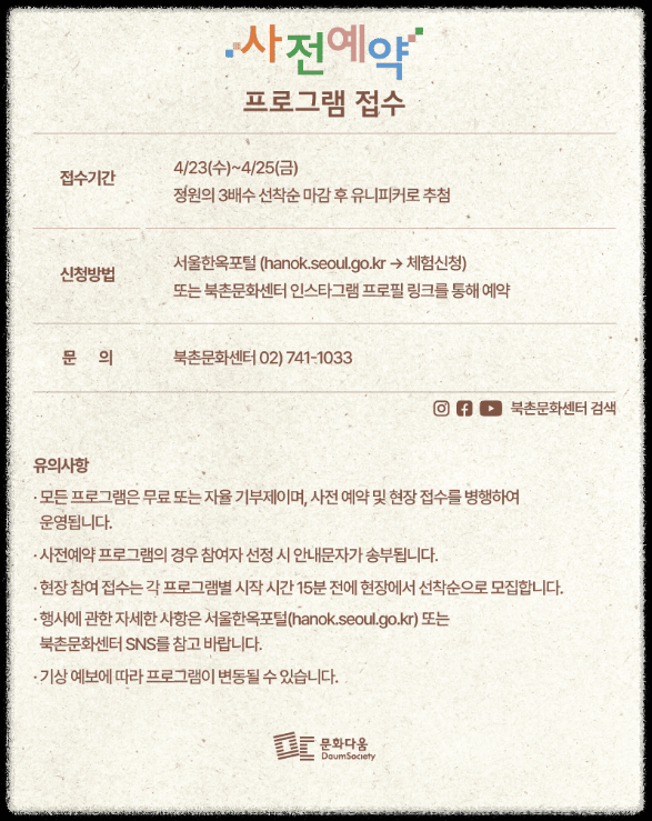 | 장소 | 북촌문화센터 (서울 종로구 계동길 37) |
