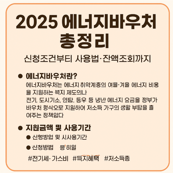 💬 전기세, 가스요금 걱정 줄여주는 2025년 에너지바우처!