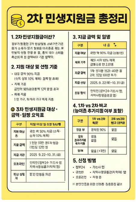 📊 2차 민생지원금 대상·금액·일정 요약표